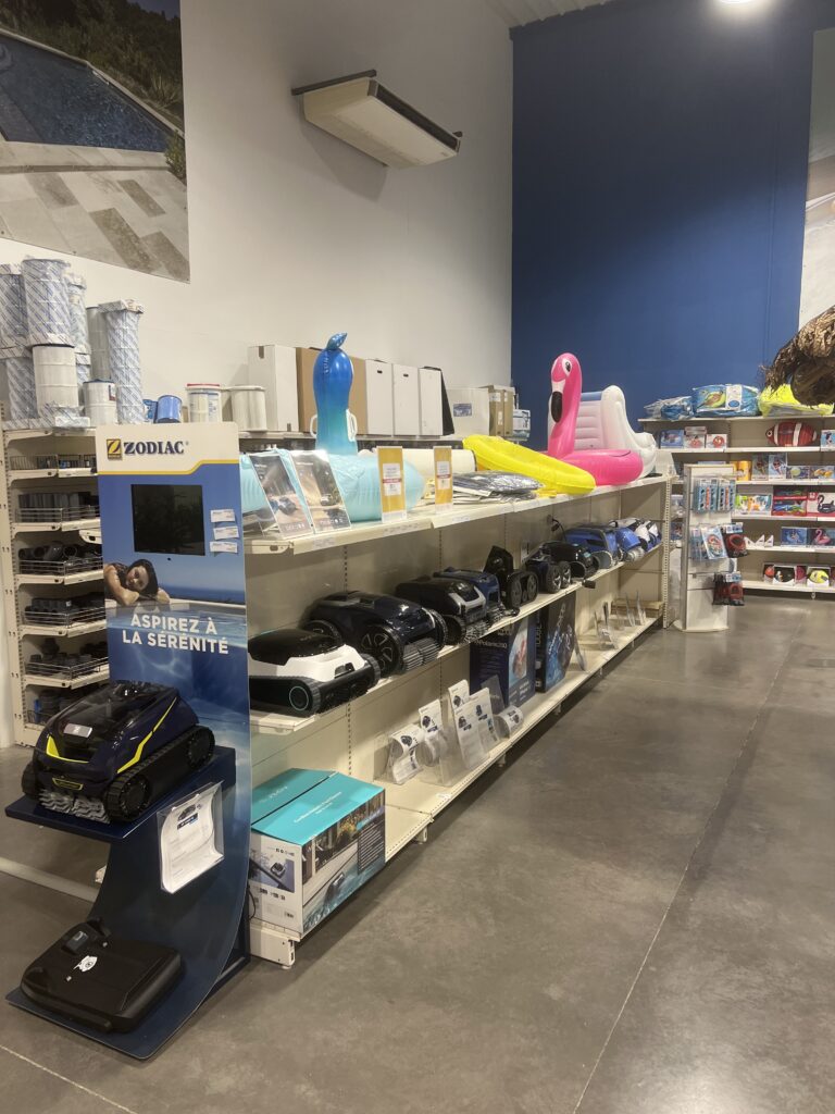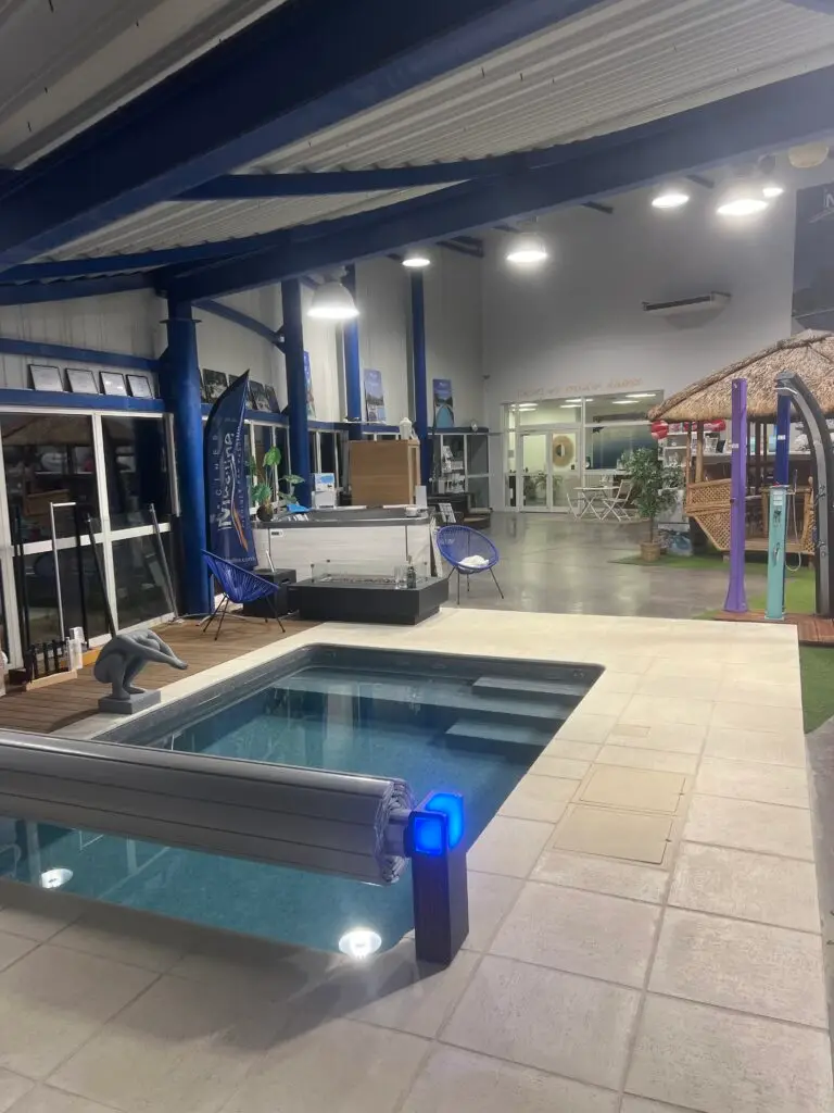 Découvrez également notre showroom de 600 m², entièrement dédié à l’univers de la piscine : spas, abris, accessoires, produits d’entretien et solutions techniques pour sublimer vos extérieurs.